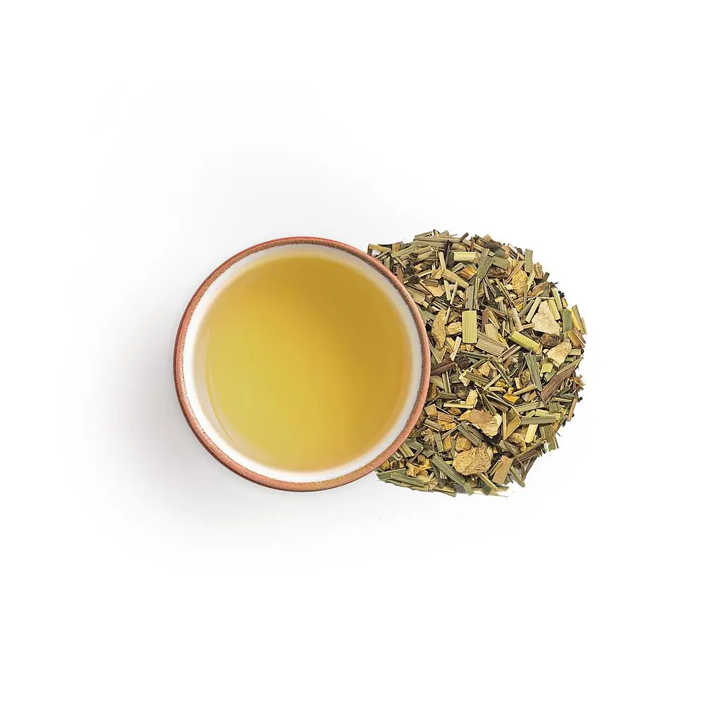 Zutaten: Zitronengras*, Süßholzwurzel*, Ingwer* (28 %), Zitronenschalen*, Pfefferminze*, schwarzer Pfeffer*